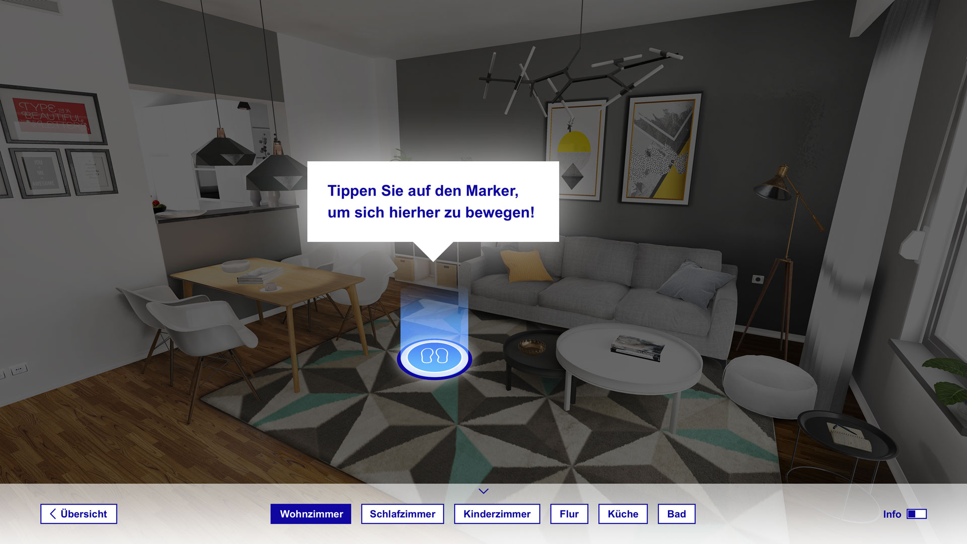A VR experience allows customers to evaluate their configuration as if it was already installed in reality. The virtual apartment can be toured with or without a set of example furniture, that allows for a more authentic impression of the accommodation.