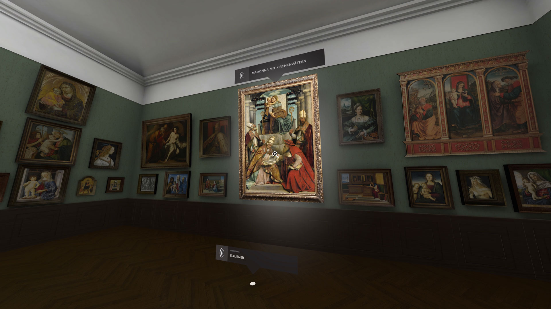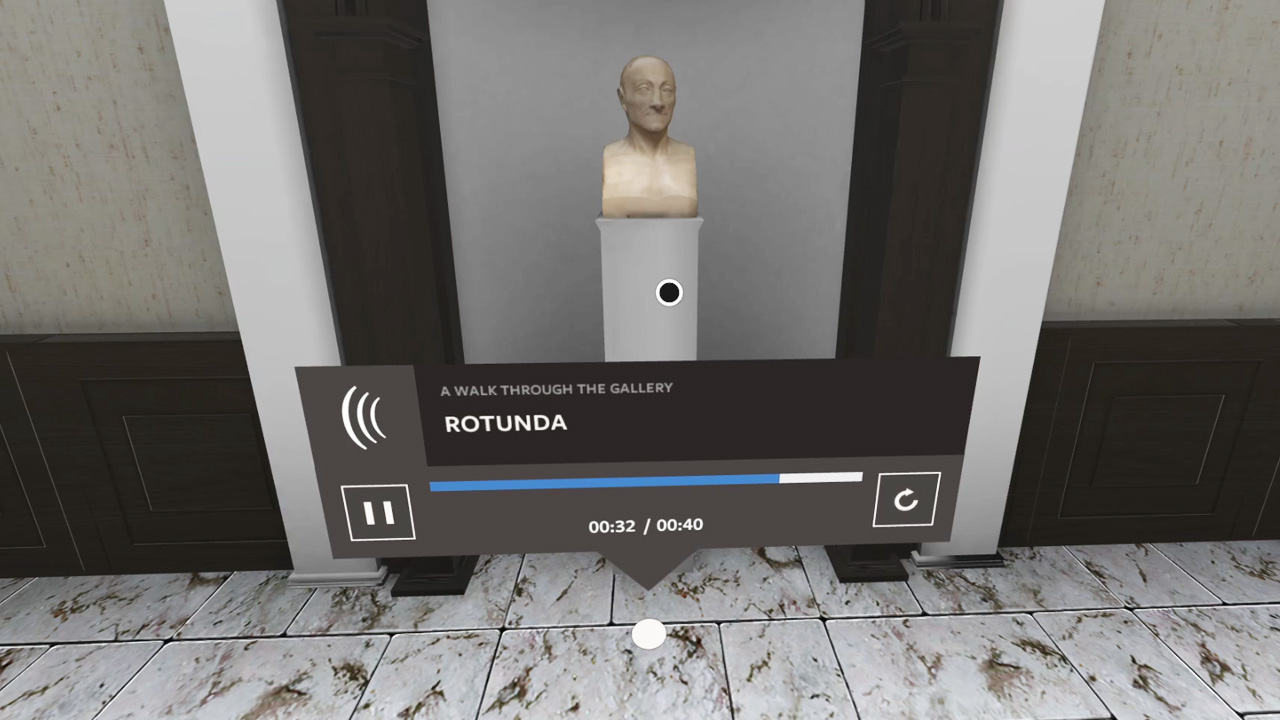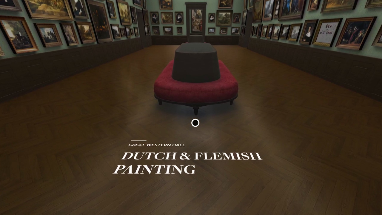 In addition to the detailed reconstruction of the architecture and paintings, ambient sound and sound effects, e.g. different footstep sounds for various floor materials, help users feel more grounded in the world. A low-key UI provides additional information to paintings and helps users navigate through the museum while not distracting from the immersive environment.