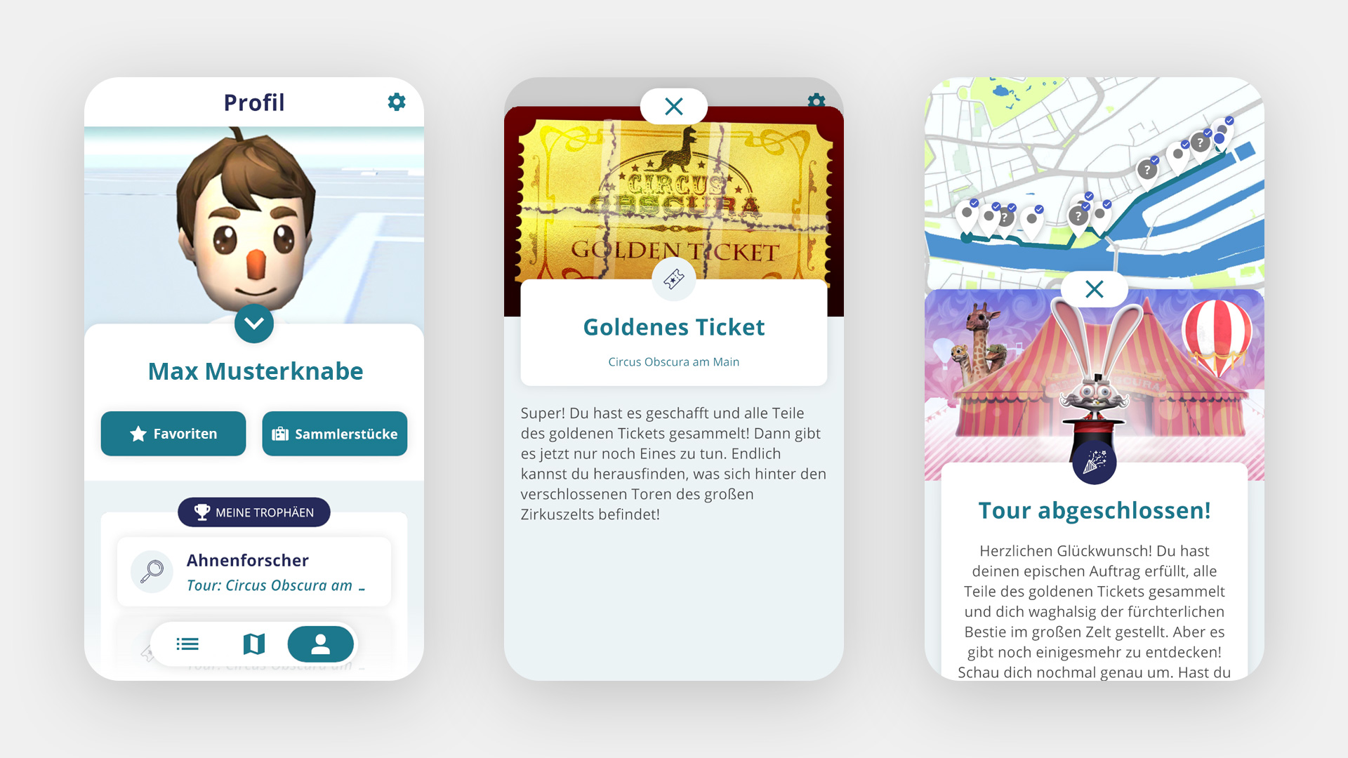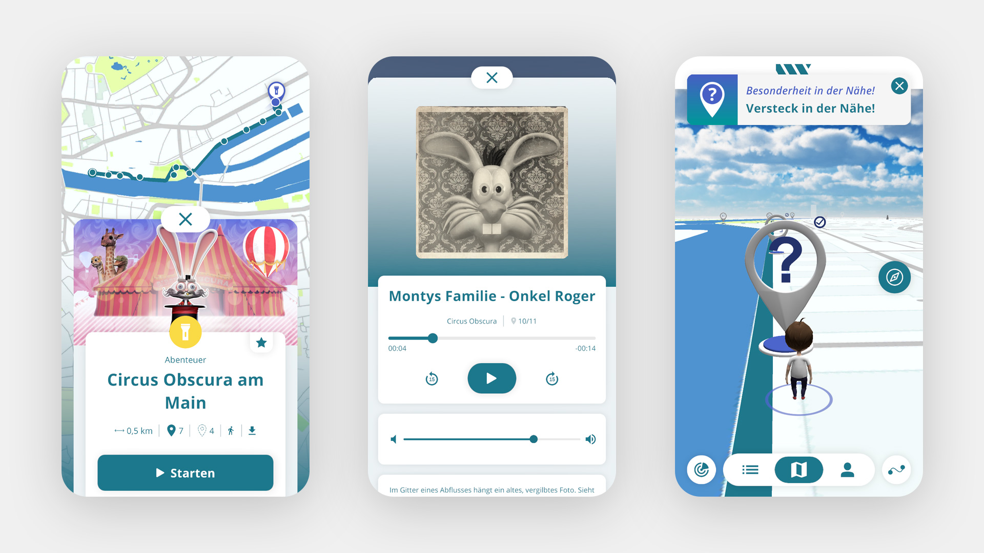 The framework was used to create the Circus Obscura demo tour in Frankfurt as well as the Tour de Grass app for the Günter Grass-Haus in Lübeck. I worked on this project as the lead designer.