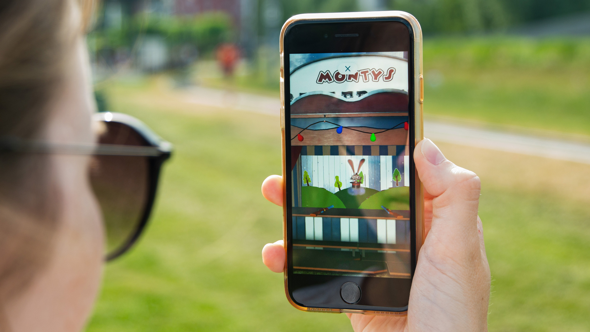 After a brief onboarding process, players start a tour and explore its points of interest. They can navigate to the next stop using a 2D or 3D map view. Each stop contains an Augmented Reality experience, audio recording or video telling the players a part of the tours story.
