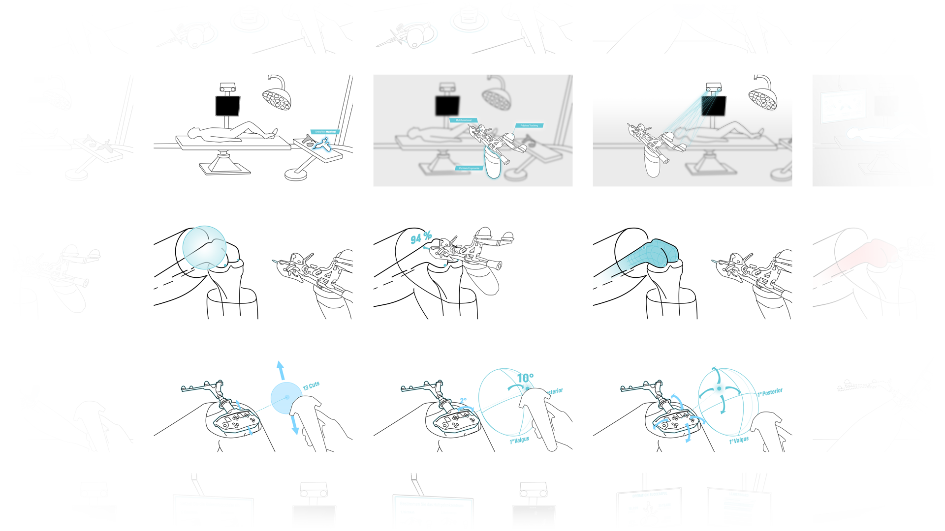 In addition to body storming and scribbles, early interactive prototypes were essential in finding solutions that worked well and conveyed a feeling of guided control, representing the value of support the OrthoPilot® aims to give surgeons in reality.